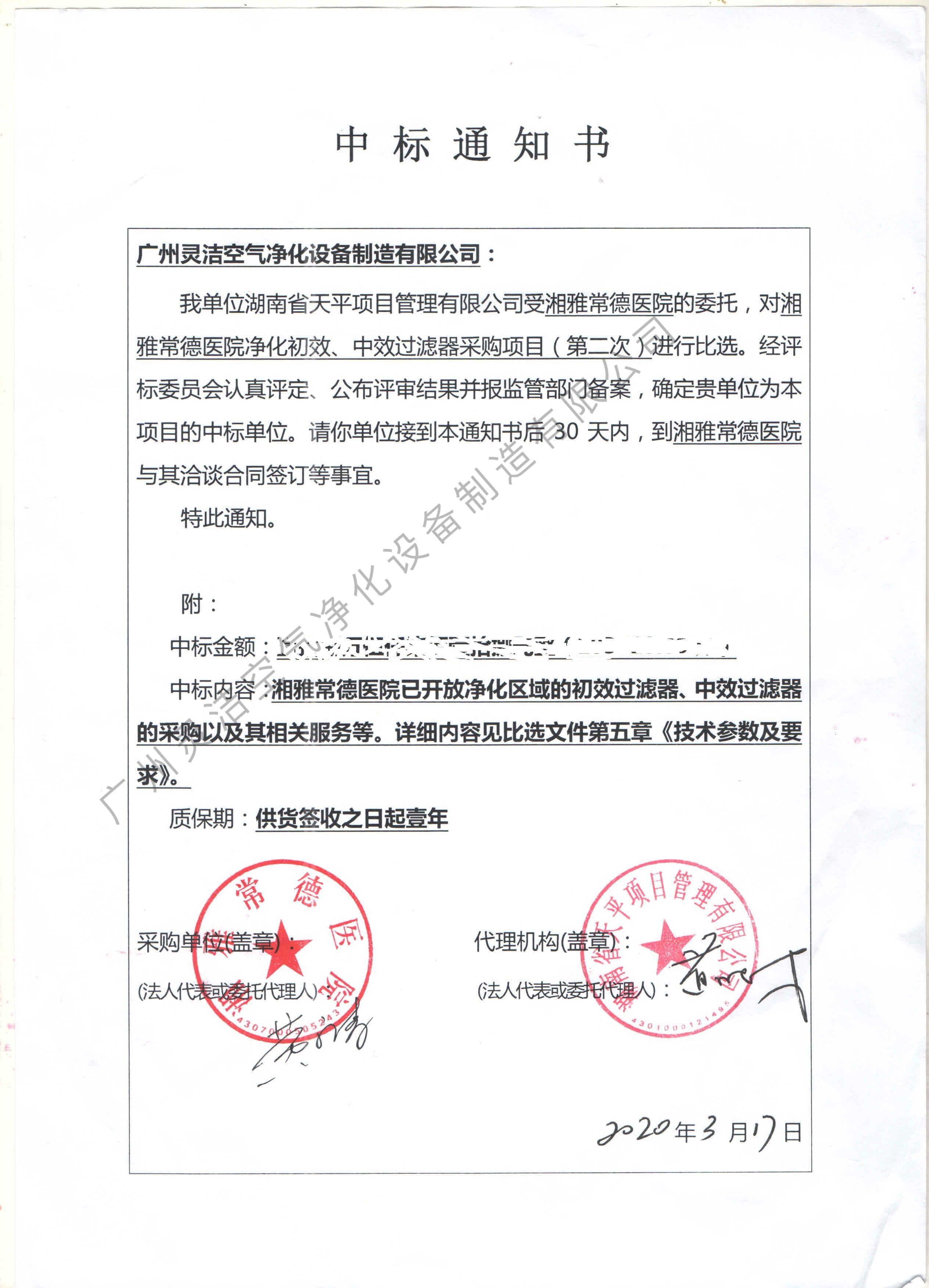 我司為湘雅常德醫(yī)院凈化區(qū)域初效過(guò)濾器、中效過(guò)濾器、高效過(guò)濾器更換安裝完畢