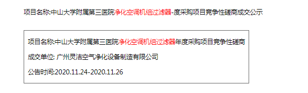 恭喜我司中標(biāo)中山大學(xué)附屬第三醫(yī)院凈化空調(diào)機(jī)組過濾器年度服務(wù)
