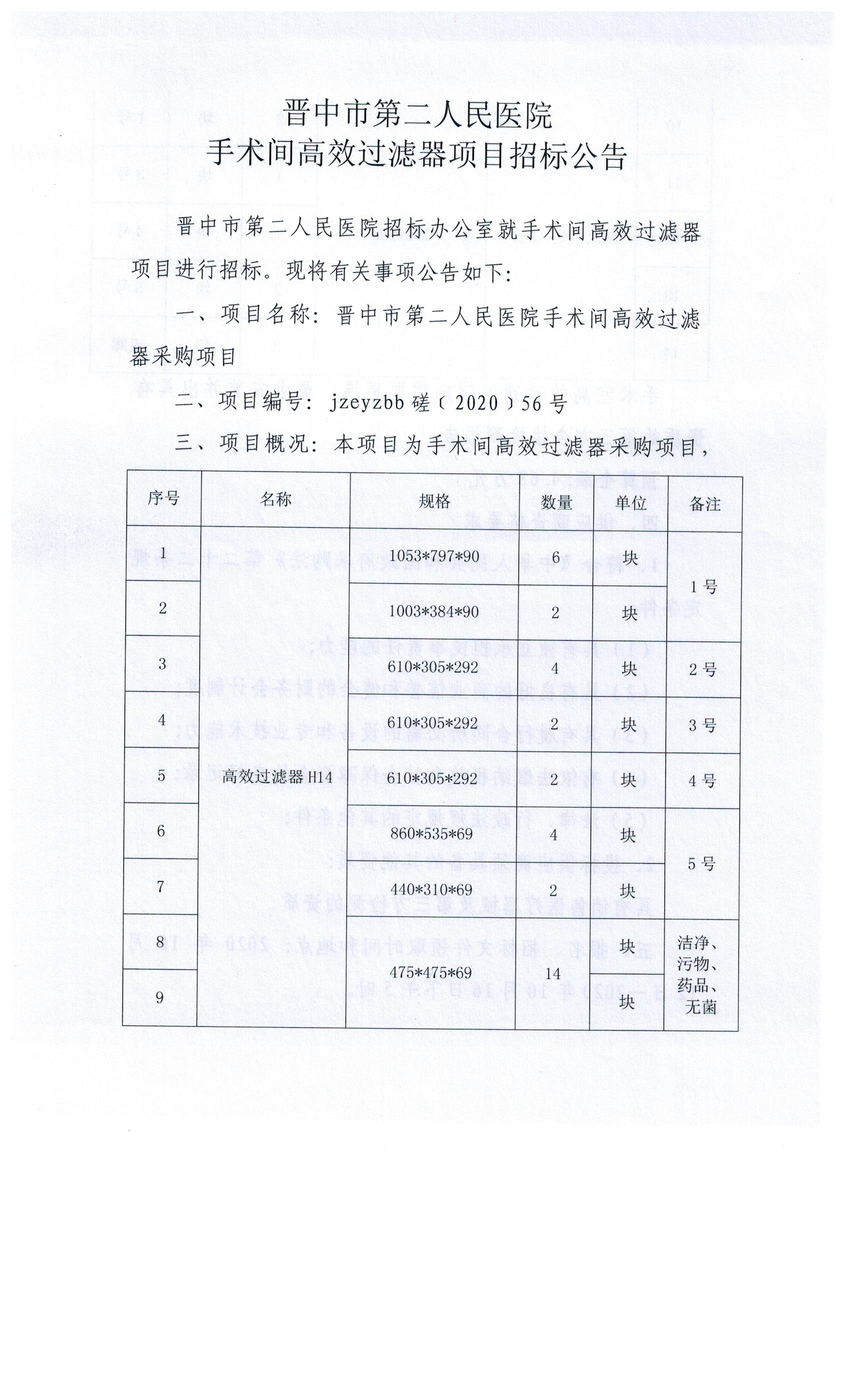 晉中市第二人民醫(yī)院手術(shù)間高效過濾器項目