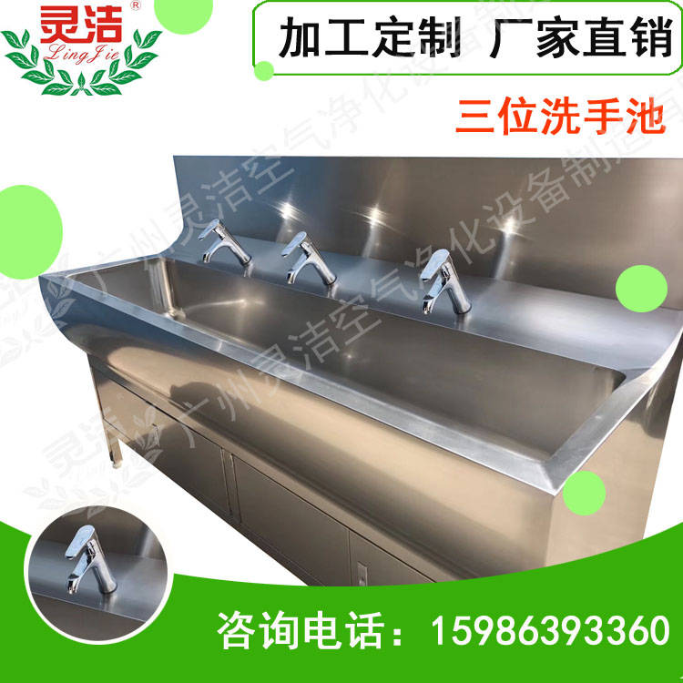 不銹鋼醫(yī)用洗涮池:采用進(jìn)口優(yōu)質(zhì)304不銹鋼板制造,國際標(biāo)準(zhǔn),園弧結(jié)構(gòu),恒溫出水,標(biāo)準(zhǔn)型號為1人、2人、3人洗手池,可定制非標(biāo)各類洗手池。說明:不銹鋼材厚度為1.2mm或者1.5mm,自帶50L電熱水器,可自由設(shè)定出水溫度,出水分膝碰和感應(yīng)兩種方式,各水嘴獨(dú)立設(shè)置,不影響其它水嘴的使用,方便使用及維護(hù)。