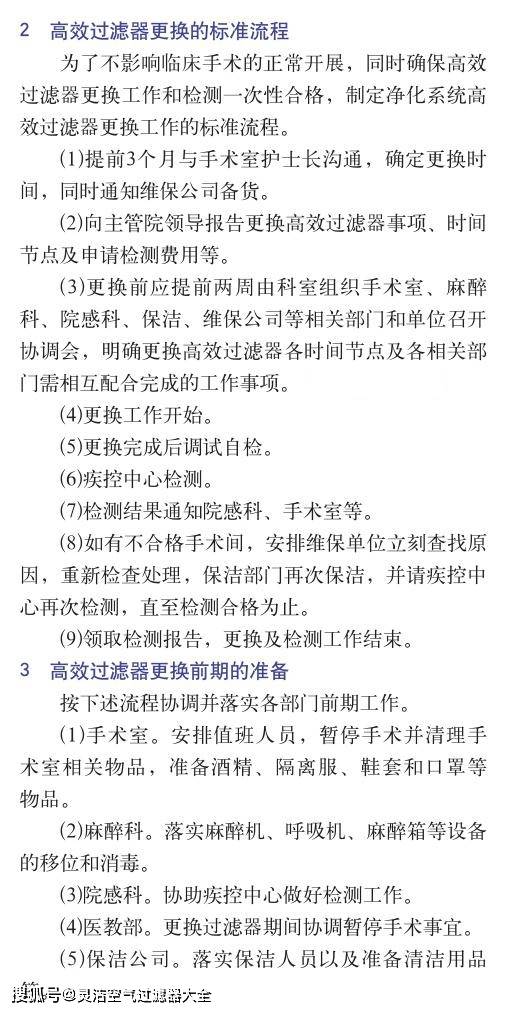 更換手術(shù)室凈化系統(tǒng)高效過濾器前1周,再次與各相關(guān)部門進(jìn)行溝通確認(rèn)更換時(shí)間,手術(shù)室在更換開始前能否按時(shí)暫停手術(shù),安裝和保潔人員落實(shí)情況、材料(酒精、抹布以及隔離服等)準(zhǔn)備情況等。安排維護(hù)人員對(duì)手術(shù)室凈化系統(tǒng)的新風(fēng)機(jī)組、循環(huán)機(jī)組表冷器進(jìn)行清洗(必要時(shí)添加84消毒液進(jìn)行消毒)、機(jī)內(nèi)保潔以及對(duì)新風(fēng)口進(jìn)行清洗。下面由空氣好凈化工程技術(shù)團(tuán)隊(duì)建議更換手術(shù)室凈化系統(tǒng)高效過濾器注意事項(xiàng)如下。