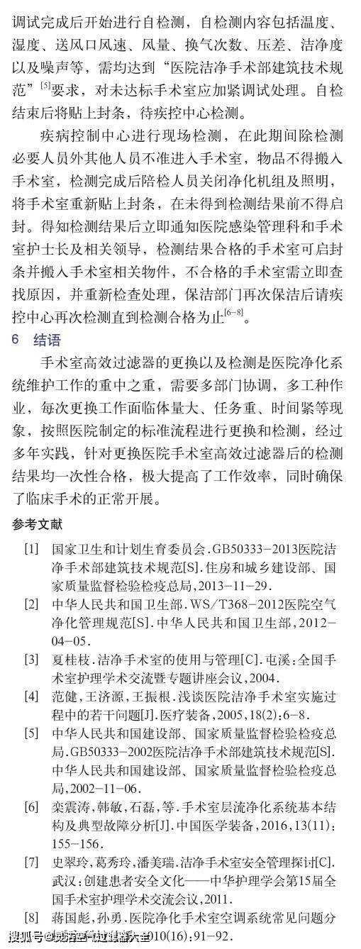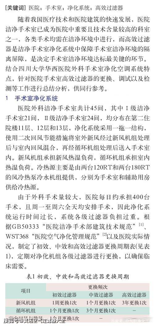 隨著我國(guó)醫(yī)療技術(shù)和醫(yī)院建筑的快速發(fā)展,醫(yī)院潔凈手術(shù)室已成為醫(yī)院中重要且技術(shù)含量較高的科室之一,各類手術(shù)均需在潔凈環(huán)境中進(jìn)行,而高效過濾器是潔凈手術(shù)室凈化系統(tǒng)中保障手術(shù)室潔凈環(huán)境的隔離屏障,是決定手術(shù)室潔凈環(huán)境達(dá)標(biāo)最關(guān)鍵的環(huán)節(jié)。